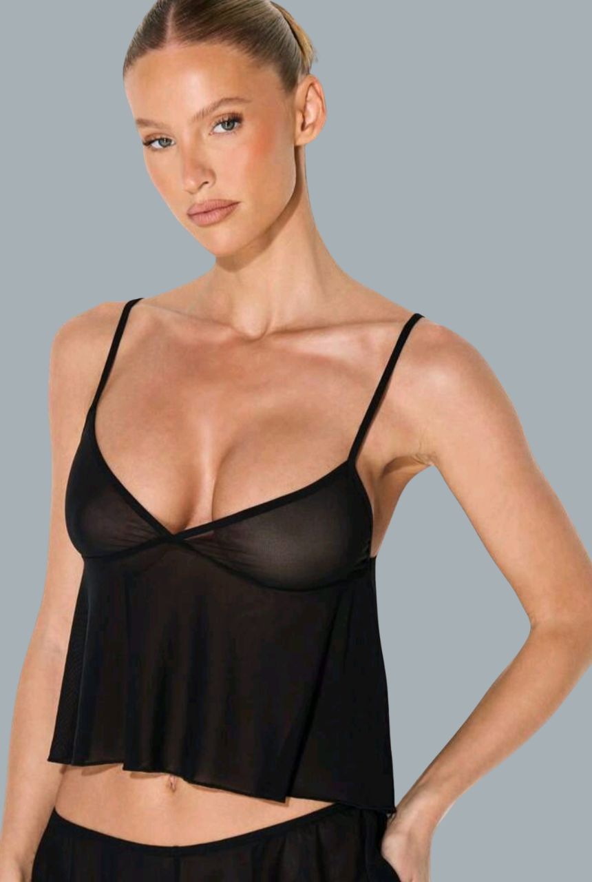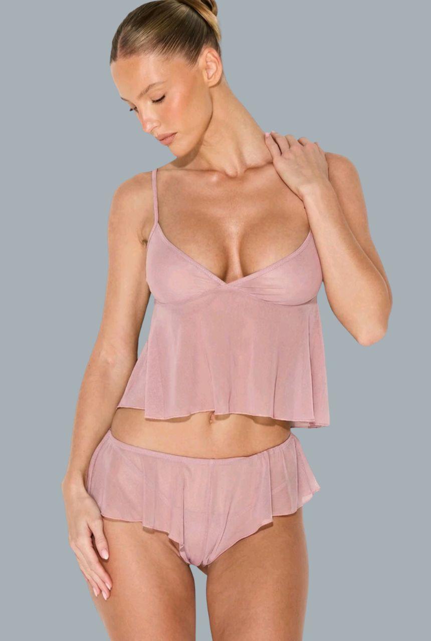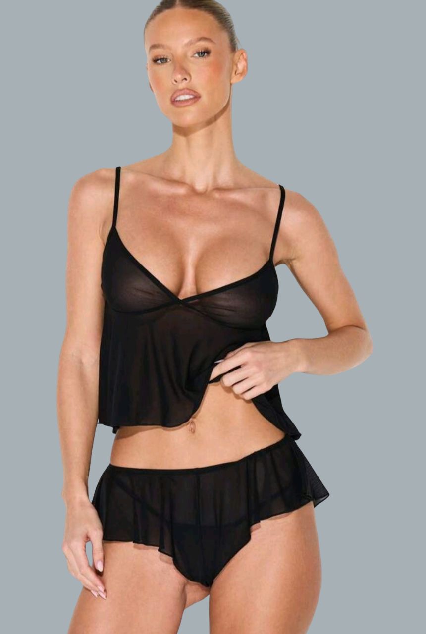 Set de dos piezas en tela semi transparente, ligera y suave al tacto.