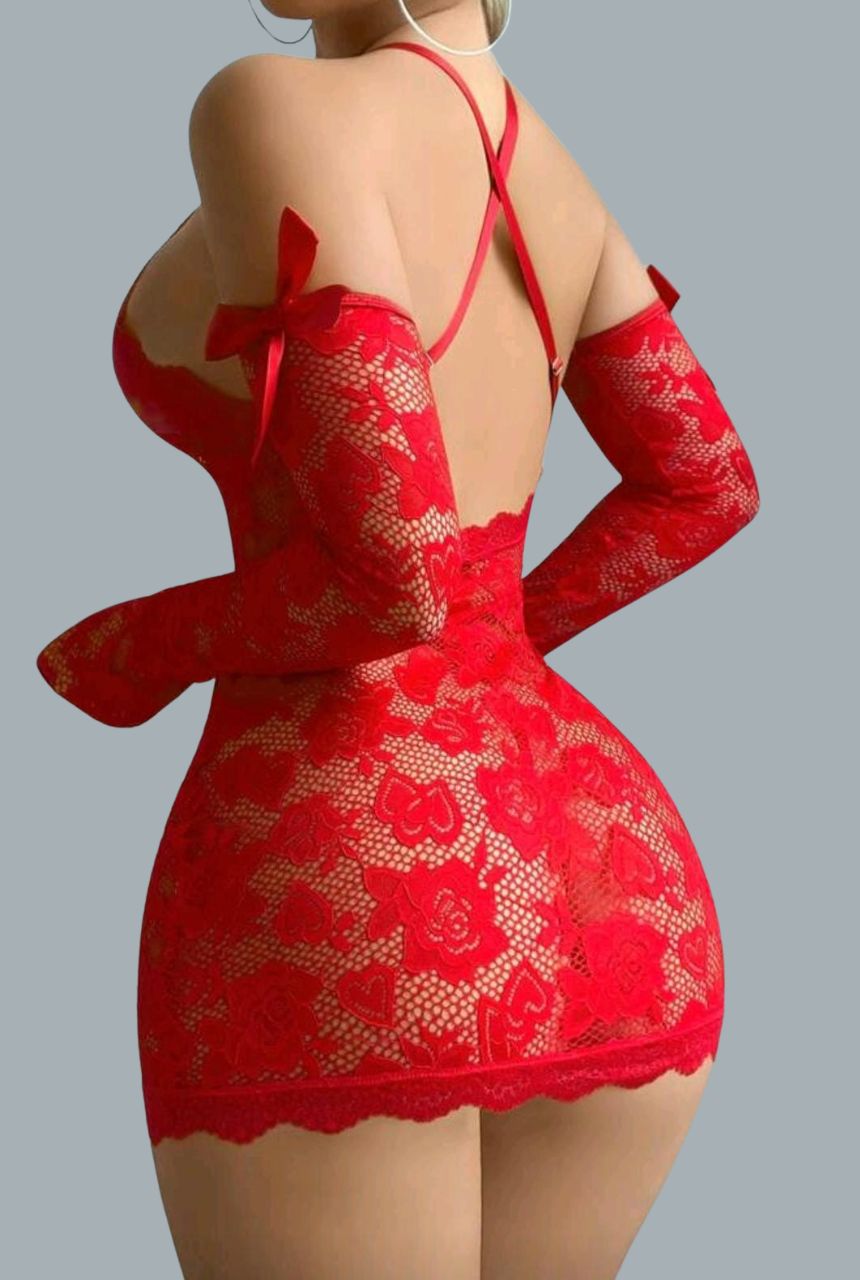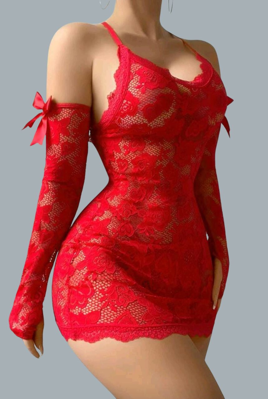 Incluye guantes que elevan el diseño y lo convieren en una pieza intensa, sofisticada y muy sensual.