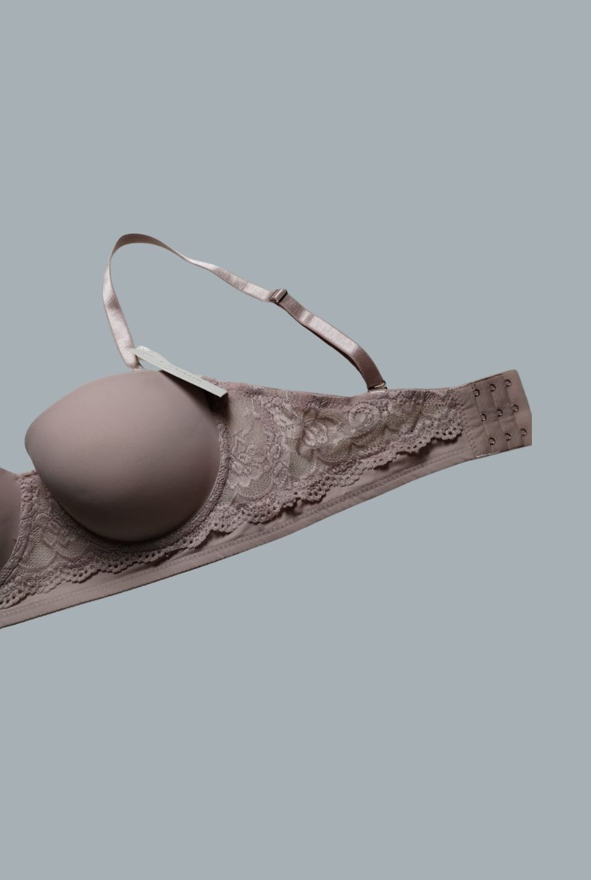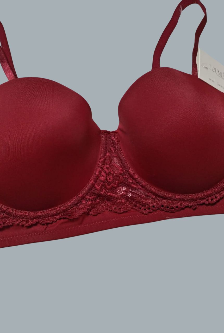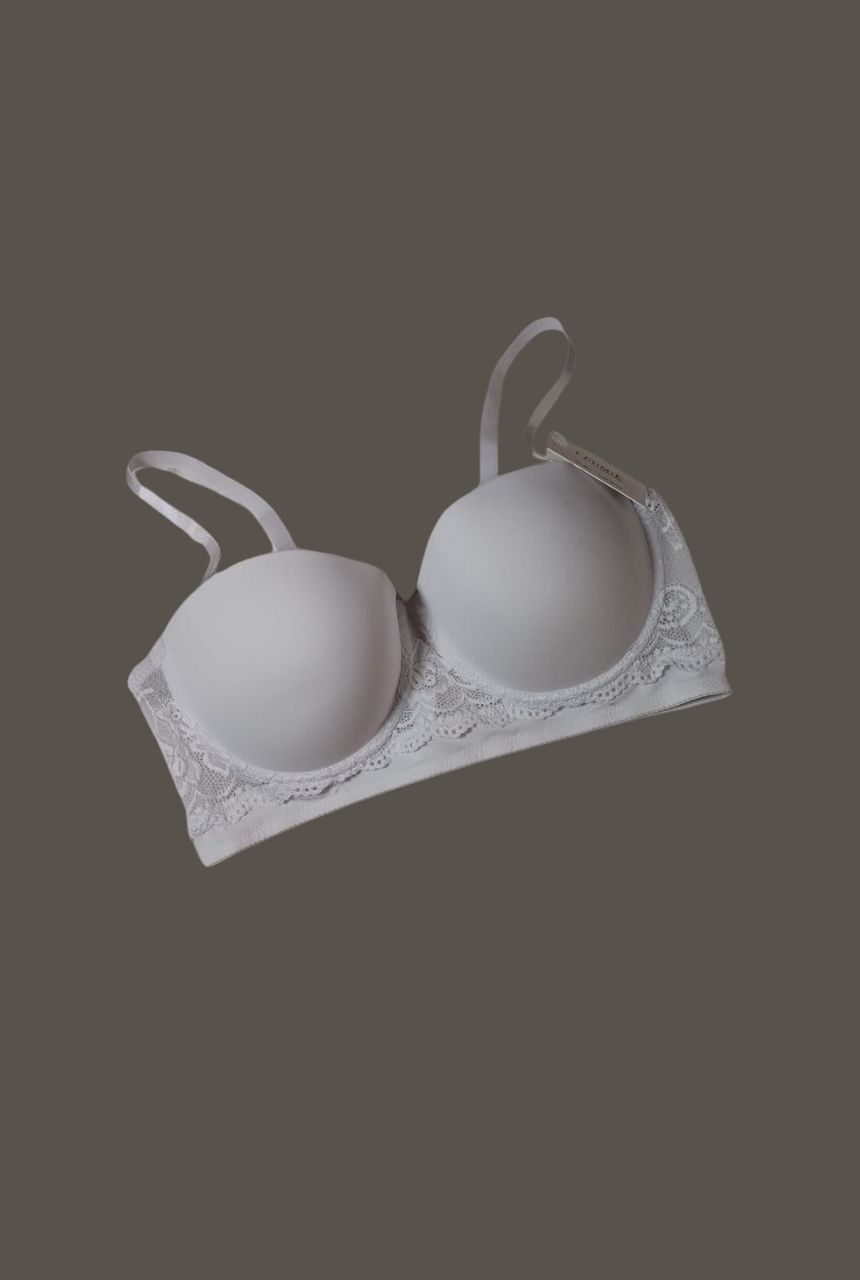 Bra copa C, liso con encaje, suave, liviano y súper femenino, copas lisas que moldean sin marcar, detalle de encaje al frente y banda que aporta el toque delicado perfecto.
