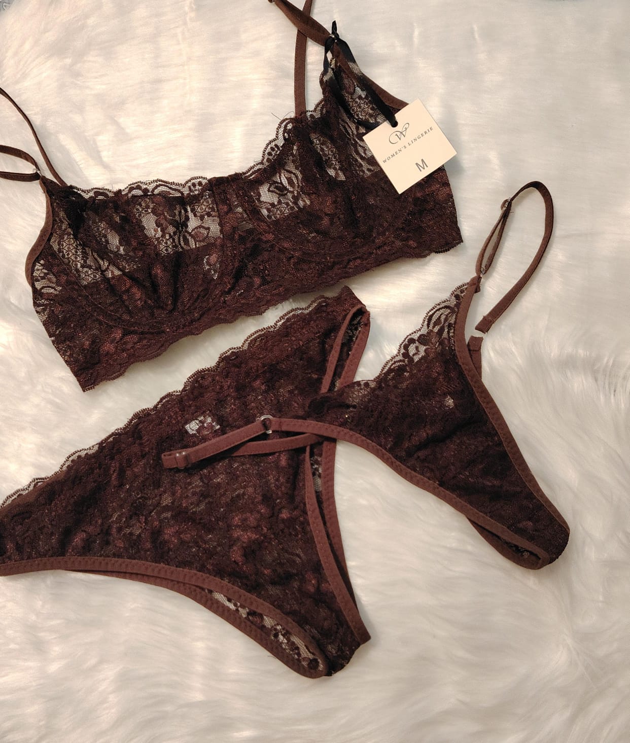 Set de lencería de encaje, 7 piezas, incluye, bra, panty, tanga, liguero, ligas.