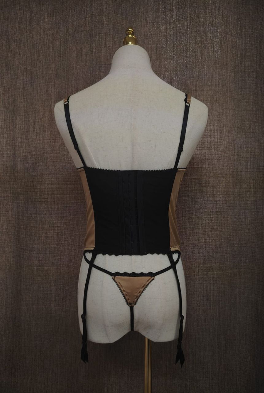 Set de dos piezas, corsé con copas forradas de encaje, esponjas removibles, tirantes ajustables, liguero, hilo con forro de encaje
